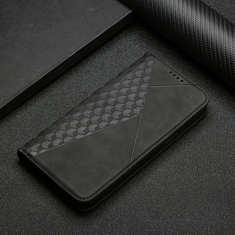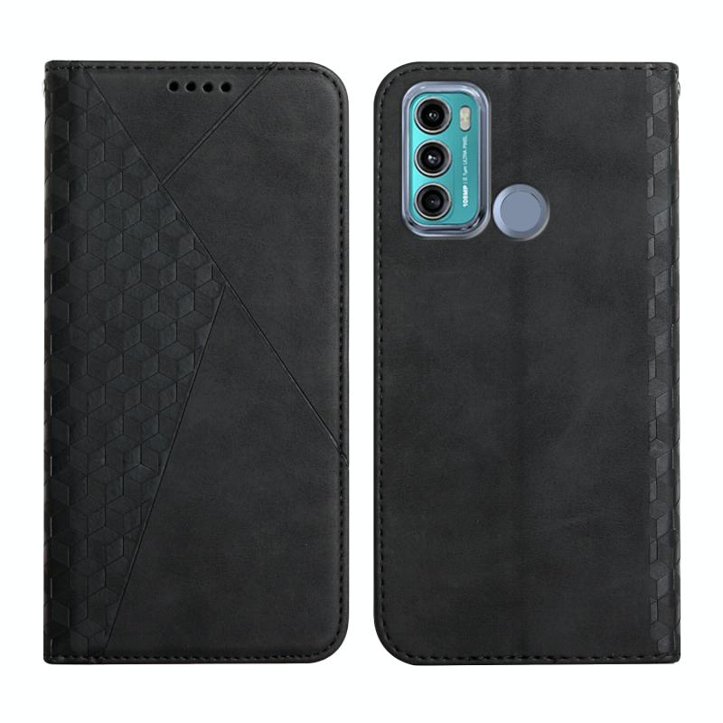 Θήκη δέρματος οριζόντιας αναδίπλωσης με μαγνητικό κλείσιμο, υφή δέρματος με διαμαντένιο σχέδιο για Motorola Moto G60 /G40, με θήκες για κάρτες, στήριξη & πορτοφόλι (Μαύρο)