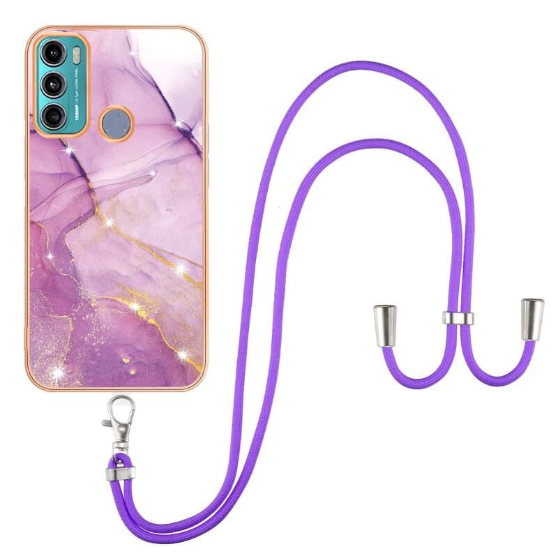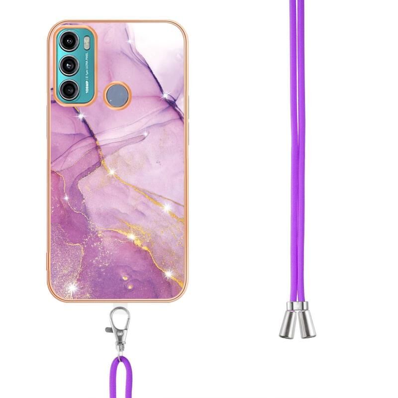 Θήκη κινητού τηλεφώνου TPU με γαλβανισμό και σχέδιο μάρμαρου IMD με κορδόνι για Motorola Moto G60/G40 Fusion (Μωβ 001)