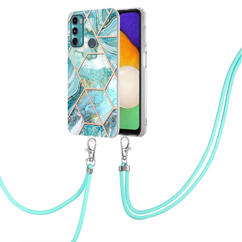 Θήκη κινητού τηλεφώνου TPU με γαλβανισμό και μαρμάρινο συνδυασμό για Motorola Moto G60 / G40 Fusion με κορδόνι (Μπλε)