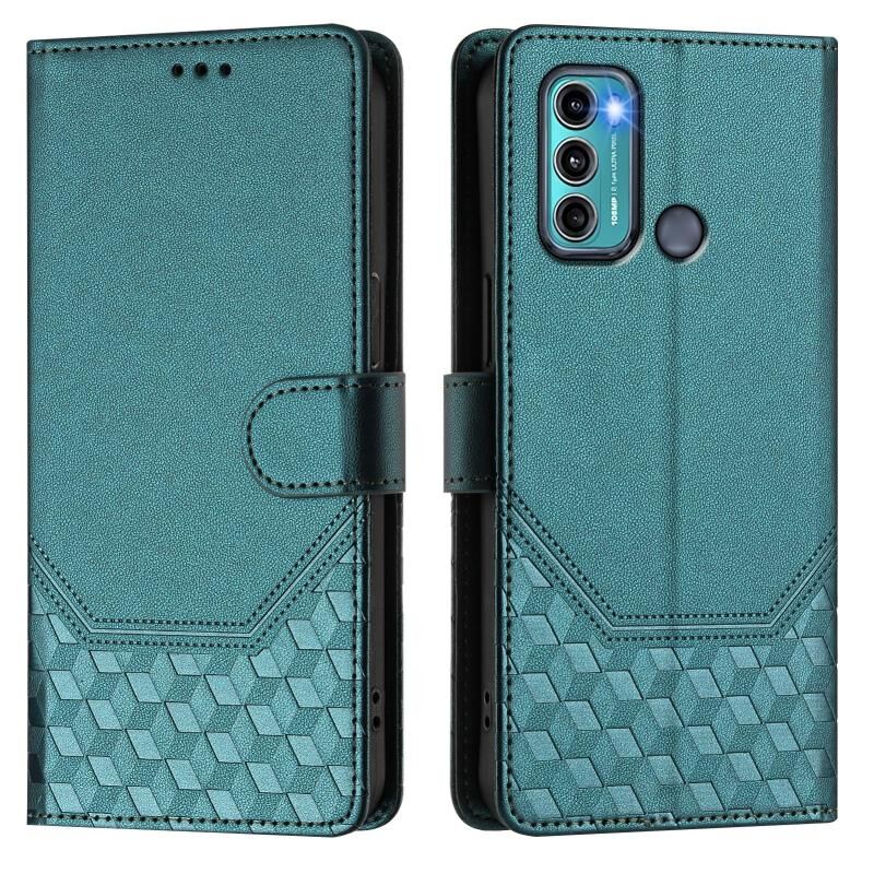 Για Motorola Moto G60 / G40 Fusion Honeycomb ανάγλυφη RFID δερμάτινη θήκη τηλεφώνου (Πράσινο παγωνιού)