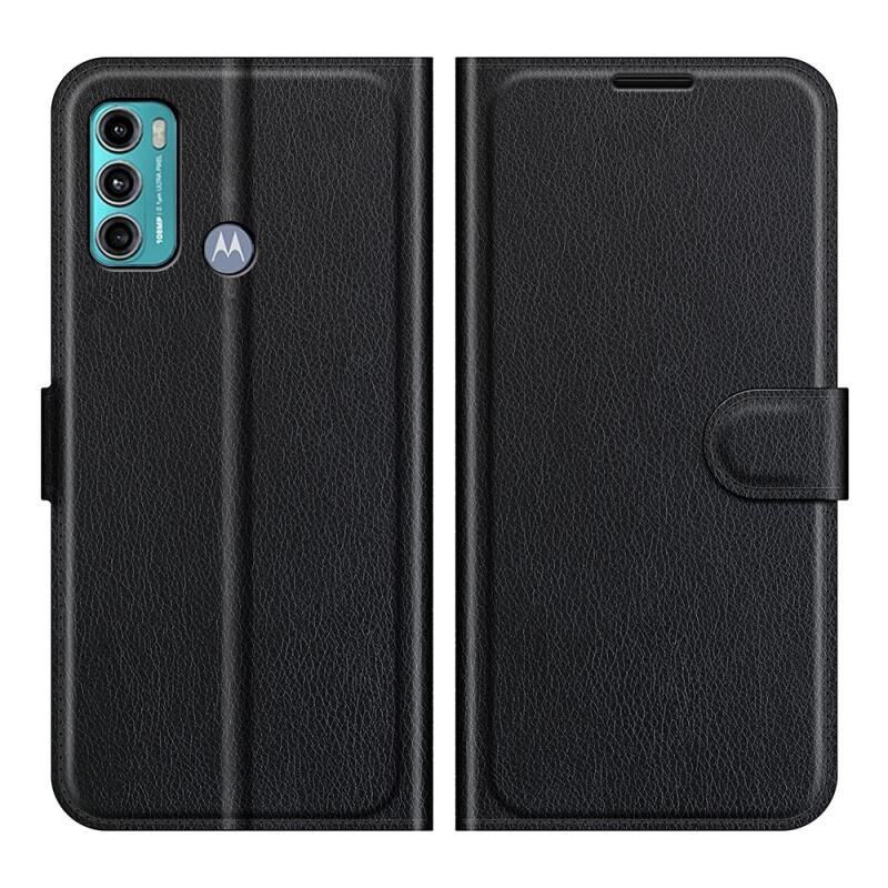 Θήκη προστασίας οριζόντιας αναδίπλωσης με υφή Litchi για Motorola Moto G60/G40 Fusion με βάση στήριξης & υποδοχές καρτών & πορτοφόλι (Μαύρο)