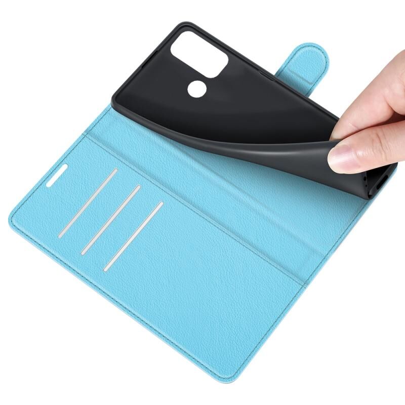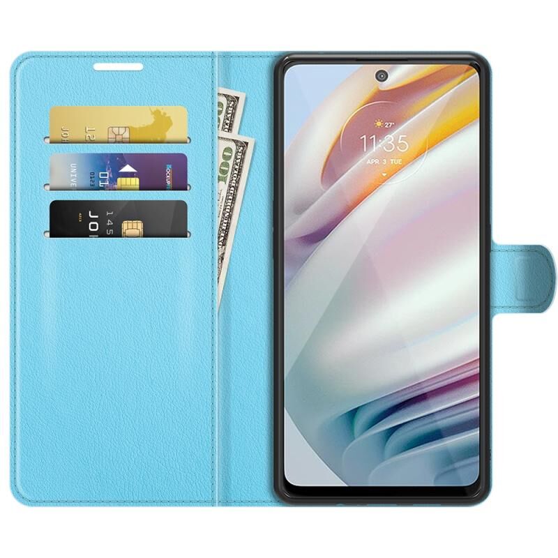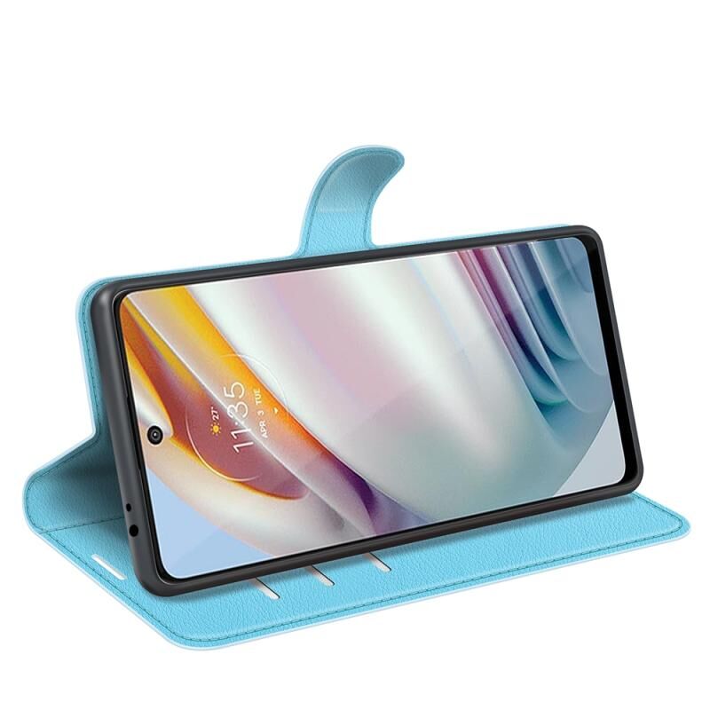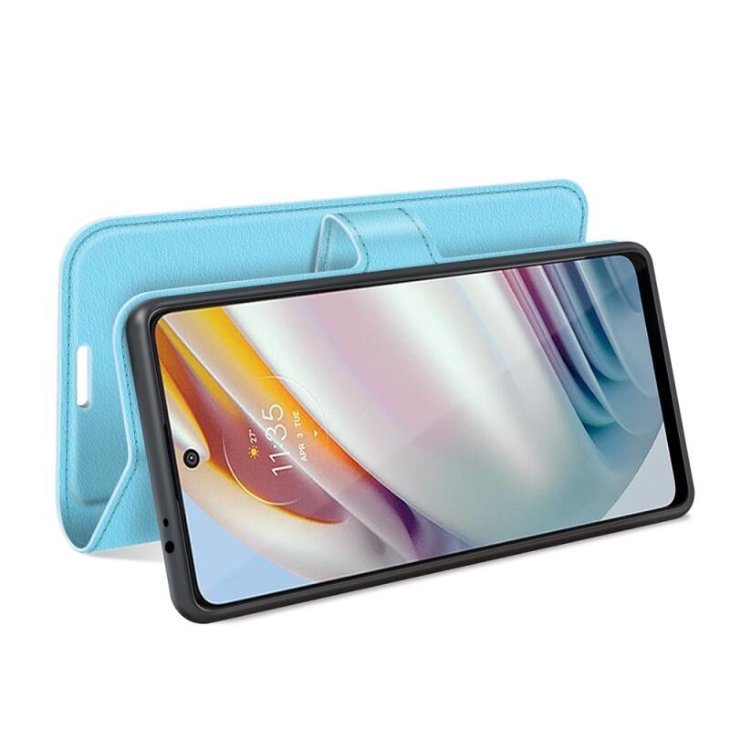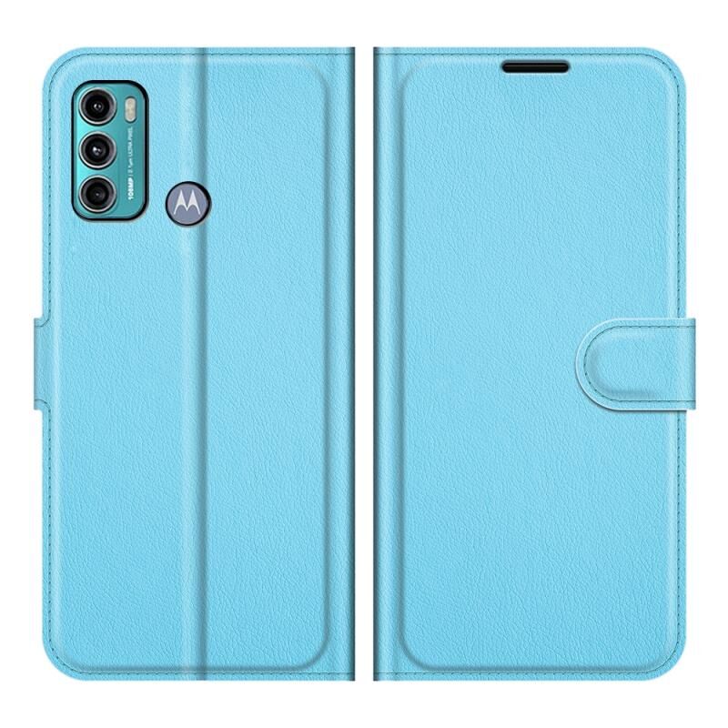 Θήκη προστασίας οριζόντιας αναδίπλωσης με υφή Litchi για Motorola Moto G60/G40 Fusion με βάση στήριξης & υποδοχές καρτών & πορτοφόλι (Μπλε)