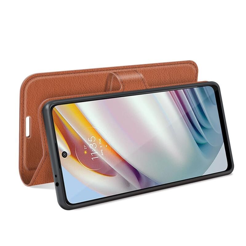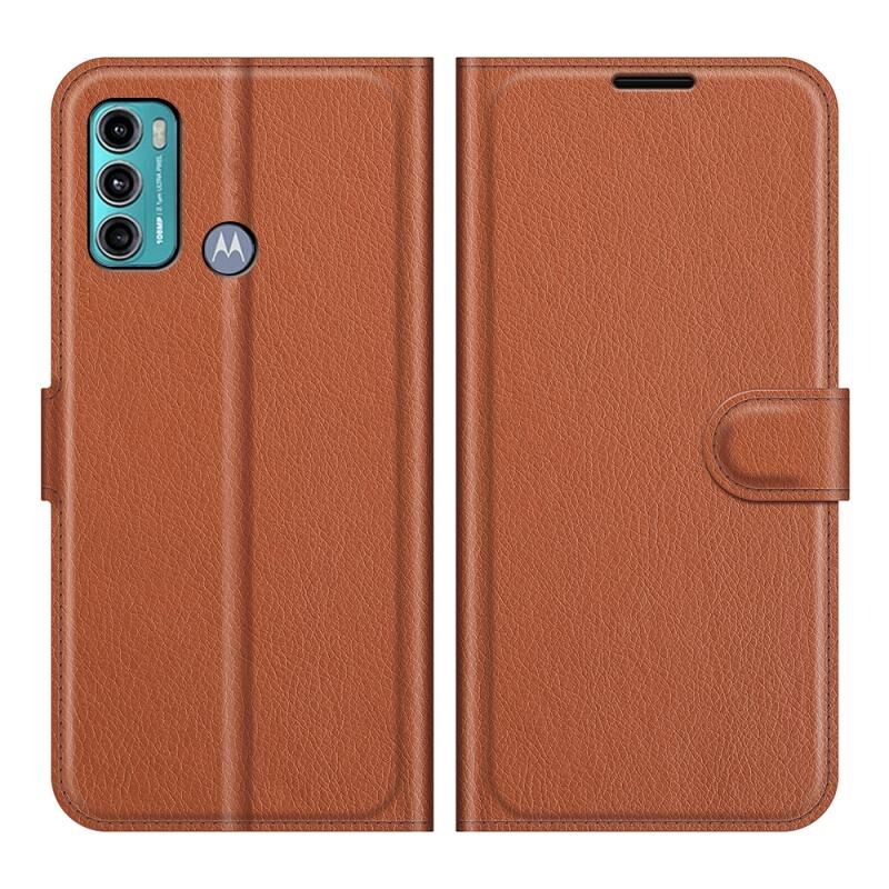Θήκη προστασίας οριζόντιας αναδίπλωσης με υφή Litchi για Motorola Moto G60/G40 Fusion με βάση στήριξης & υποδοχές καρτών & πορτοφόλι (Καφέ)