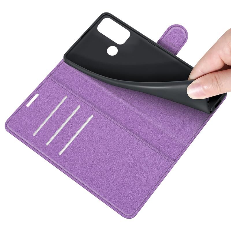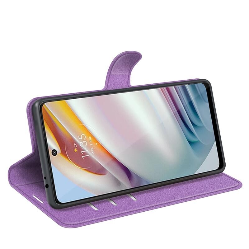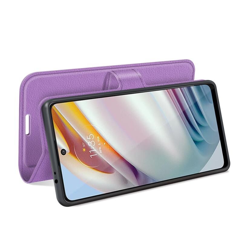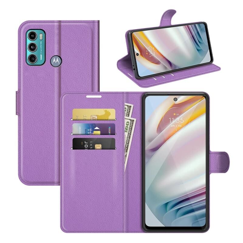Θήκη προστασίας οριζόντιας αναδίπλωσης με υφή Litchi για Motorola Moto G60/G40 Fusion με βάση στήριξης & υποδοχές καρτών & πορτοφόλι (Μωβ)