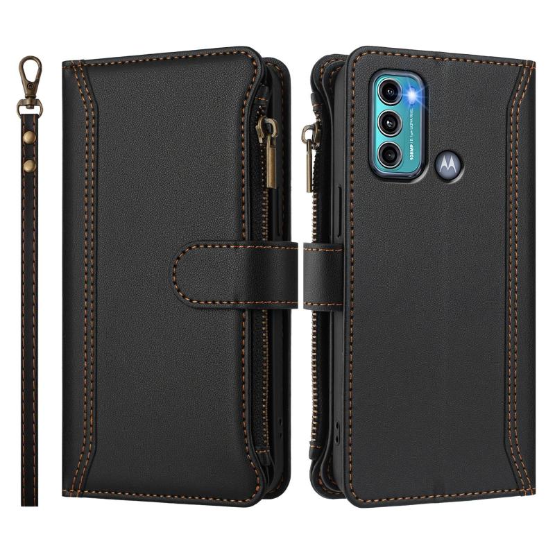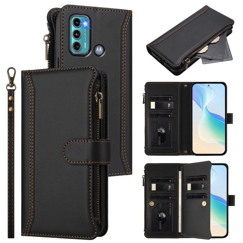 For Motorola Moto G60 / G40 Fusion Magnetic Closure 9 Card Slots Zipper Leather Case with Hand Strap(Black)