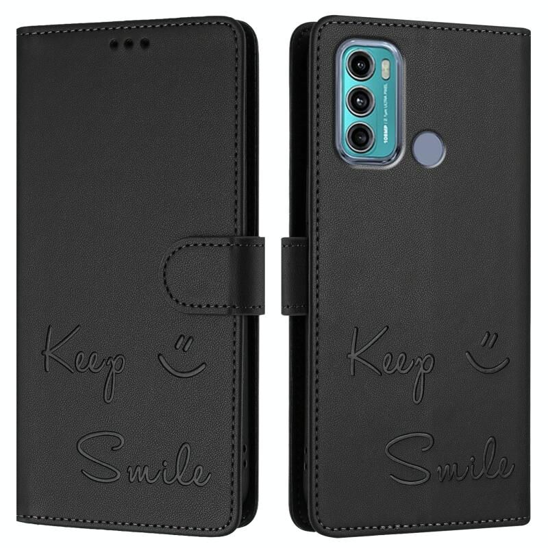 Θήκη τηλεφώνου από δέρμα με ανάγλυφο χαμόγελο RFID για Motorola Moto G60/G40 Fusion (Μέντας Πράσινο)
