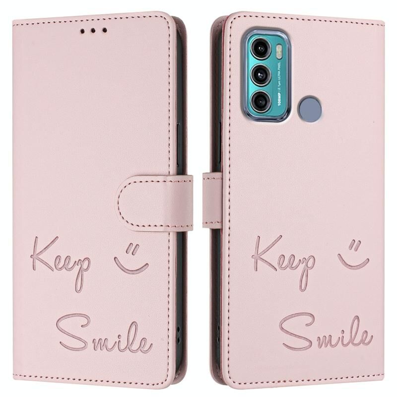 Θήκη τηλεφώνου από δέρμα με ανάγλυφο χαμόγελο RFID για Motorola Moto G60/G40 Fusion (Μέντας Πράσινο)