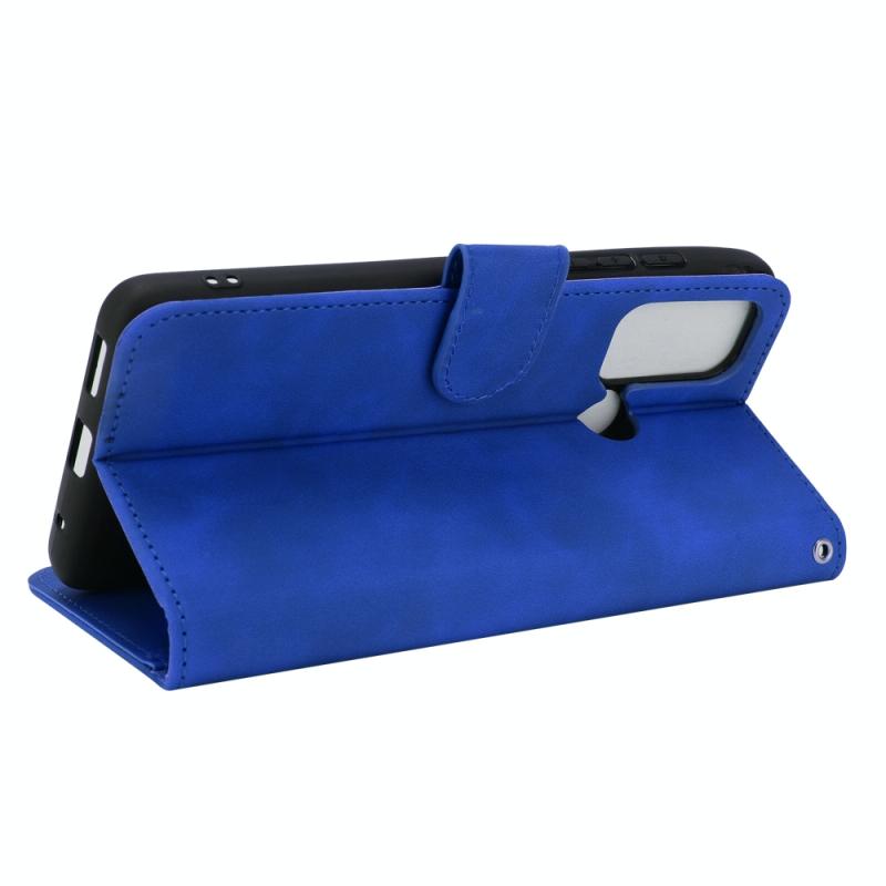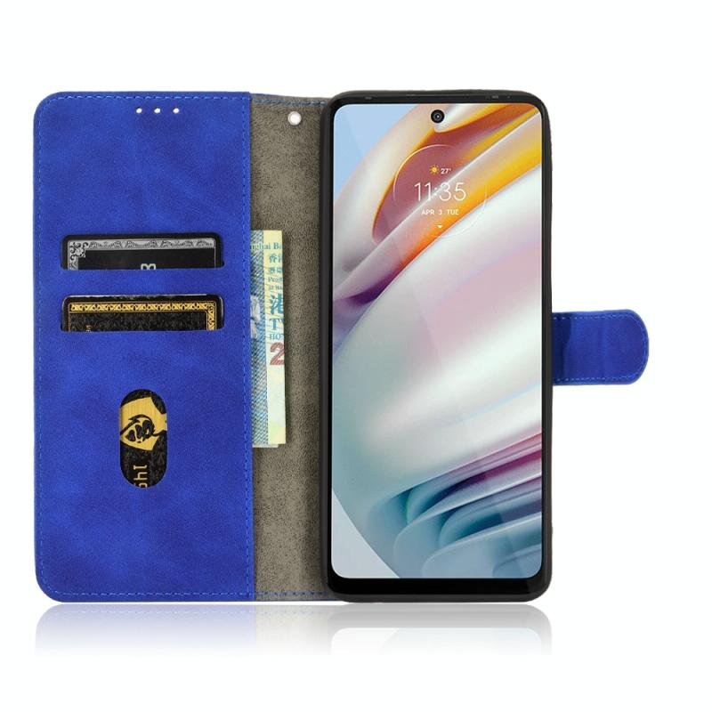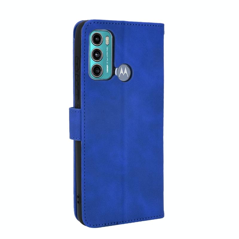 Θήκη για Motorola Moto G60 / G40 Fusion, μονόχρωμη, με αίσθηση δέρματος, μαγνητικό κούμπωμα, οριζόντια, με υφή μοσχαριού, από δερματίνη PU, με θήκη & υποδοχές καρτών & πορτοφόλι (Μπλε)