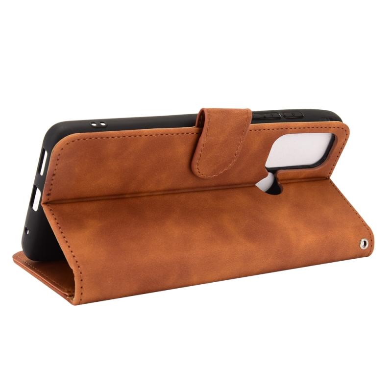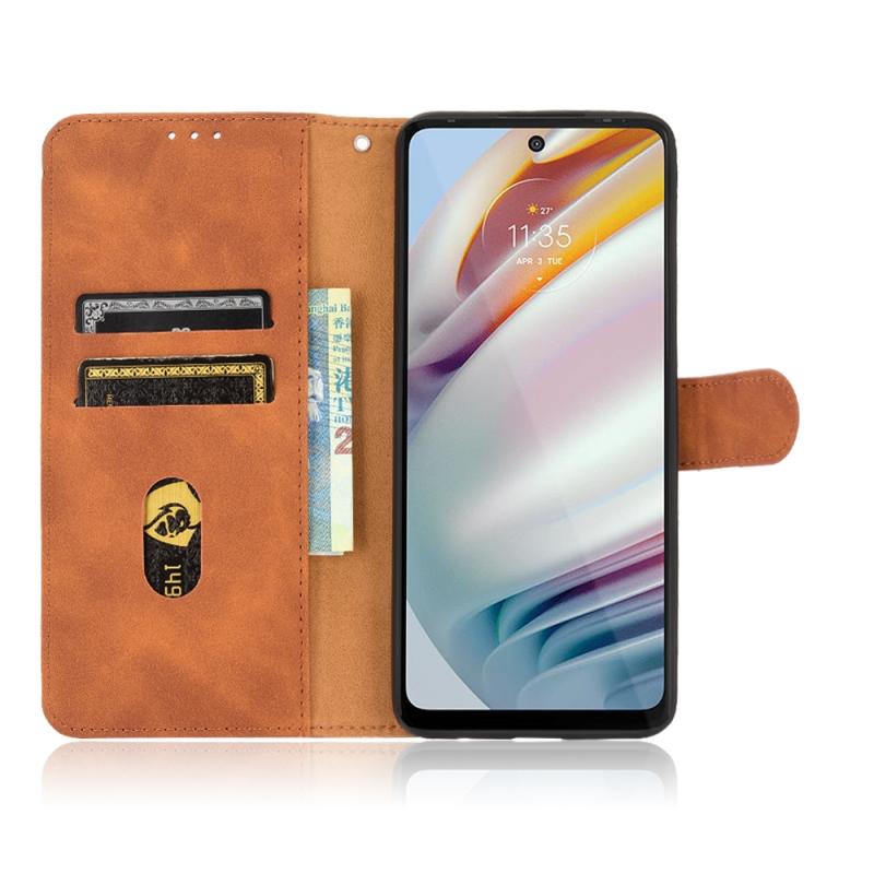 Θήκη για Motorola Moto G60 / G40 Fusion, μονόχρωμη, με αίσθηση δέρματος, μαγνητικό κούμπωμα, οριζόντια, με υφή μοσχαριού, από δερματίνη PU, με θήκη & υποδοχές καρτών & πορτοφόλι (Καφέ)