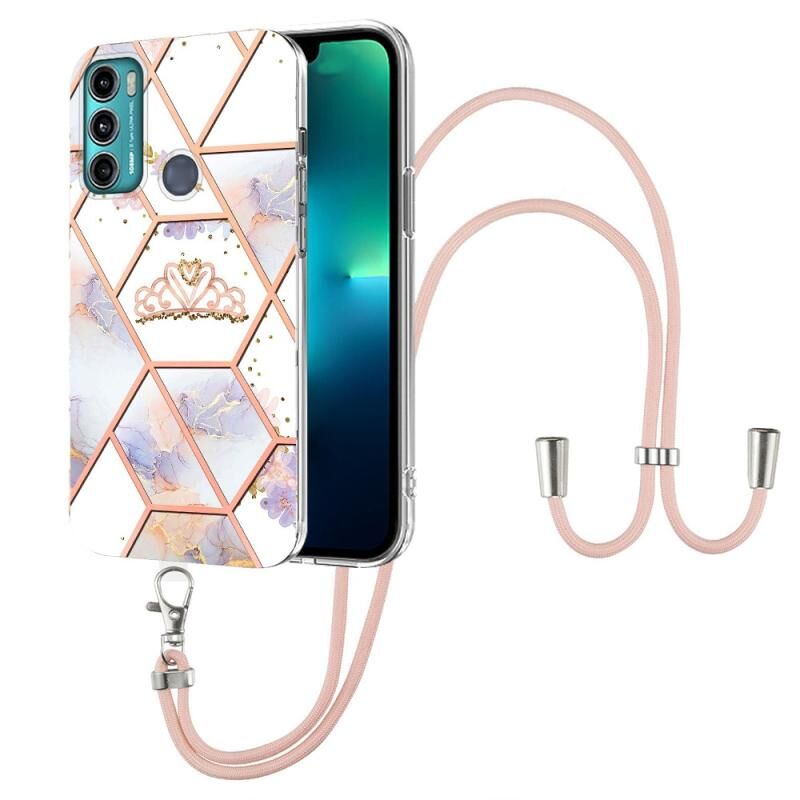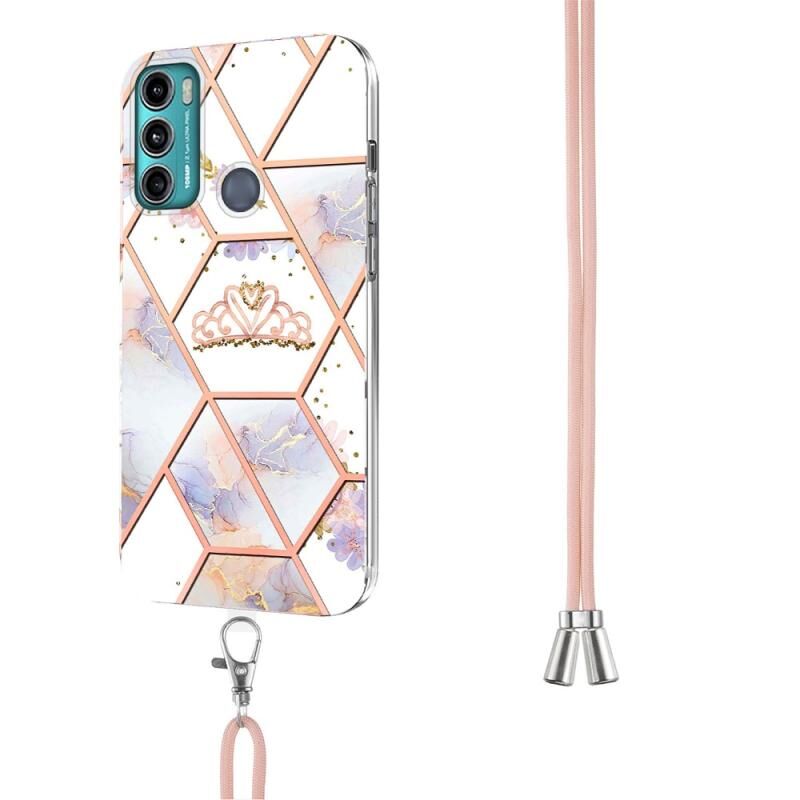 Θήκη τηλεφώνου TPU με σχέδιο μαρμάρου και λουλουδιών για Motorola Moto G60 / G40 Fusion με κορδόνι (Imperial Crown)