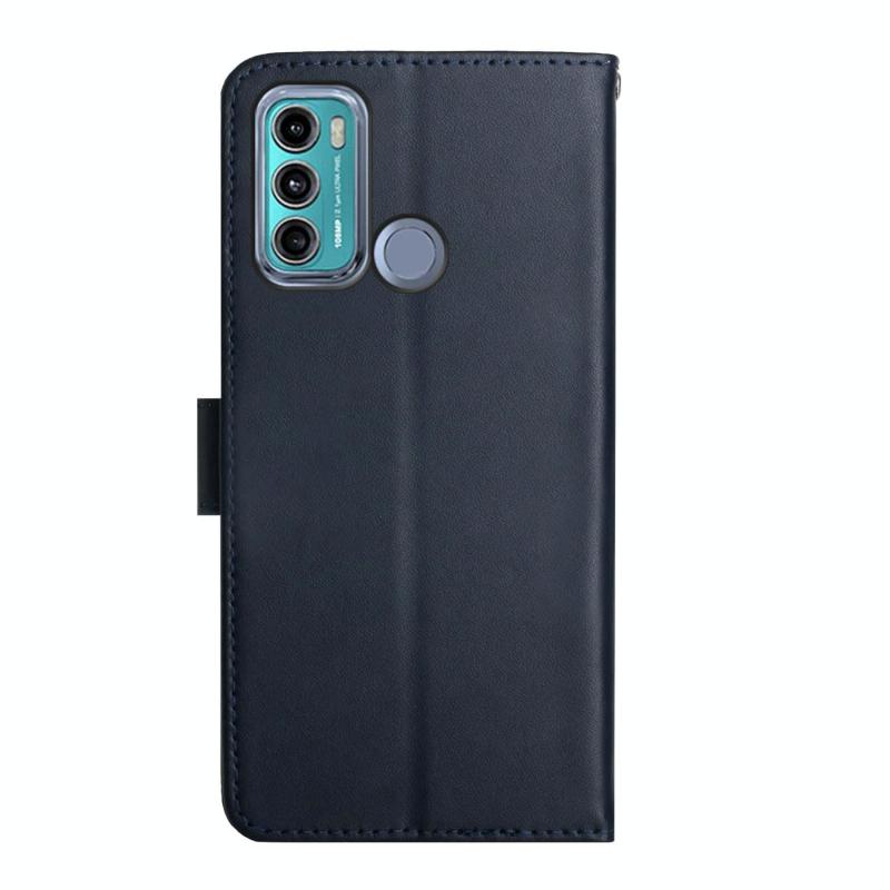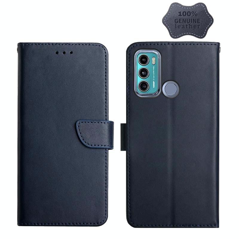 Θήκη τηλεφώνου οριζόντια, flip, από γνήσιο δέρμα, ανθεκτική στα δακτυλικά αποτυπώματα για Motorola Moto G60 (Μπλε)