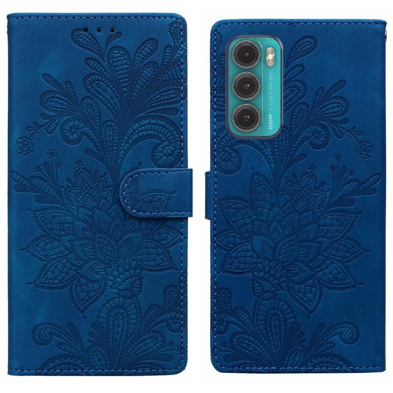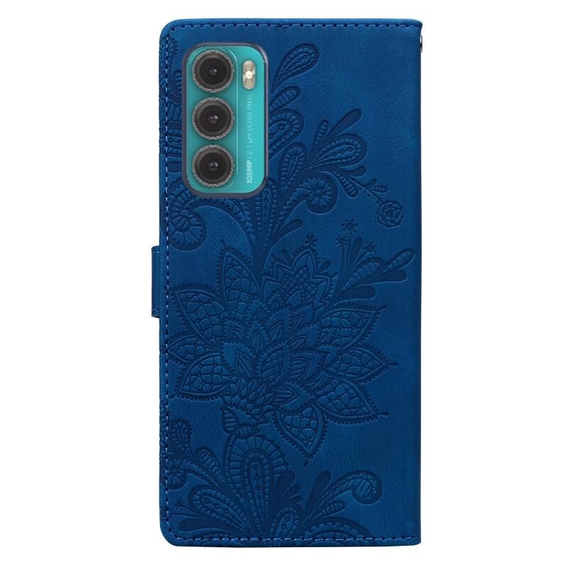Θήκη κινητού τηλεφώνου Motorola Moto G60 με δαντελένιο λουλουδάτο ανάγλυφο, μαγνητικό κούμπωμα και λουρί καρπού (Πράσινο)