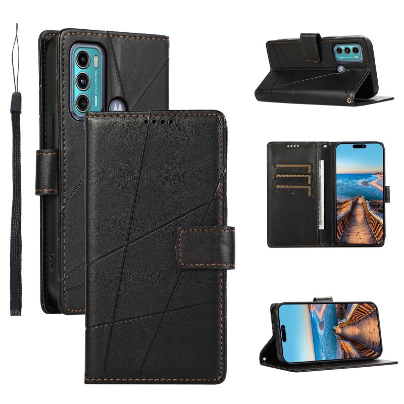 For Motorola Moto G60 PU Genuine Leather Texture Embossed Line Phone Case(Black)