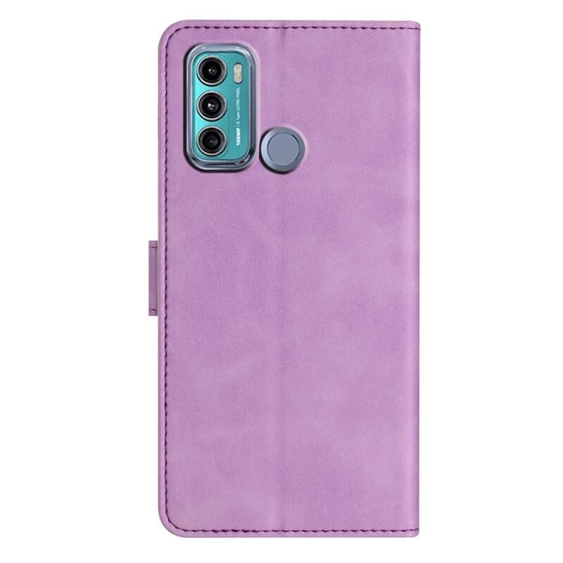 Θήκη κινητού τηλεφώνου από δέρμα με ανάγλυφο σχέδιο "Επτά Πεταλούδες" για Motorola Moto G60 (Μωβ)
