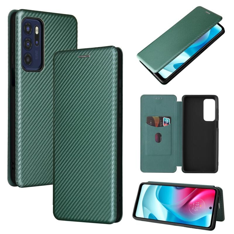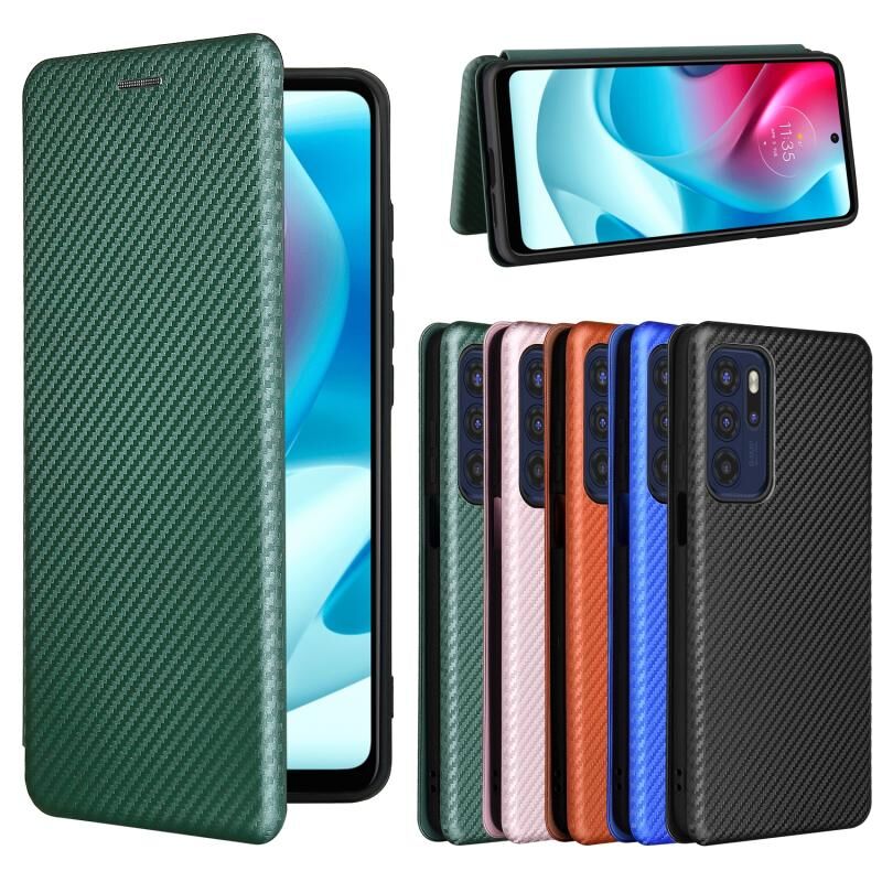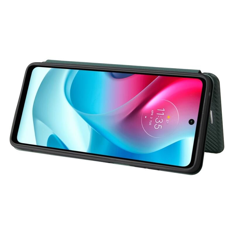 Θήκη για Motorola Moto G60S με υφή ανθρακονημάτων, οριζόντια, αναδιπλούμενη, από TPU + PC + Δερματίνη PU με θήκη για κάρτες (Καφέ)