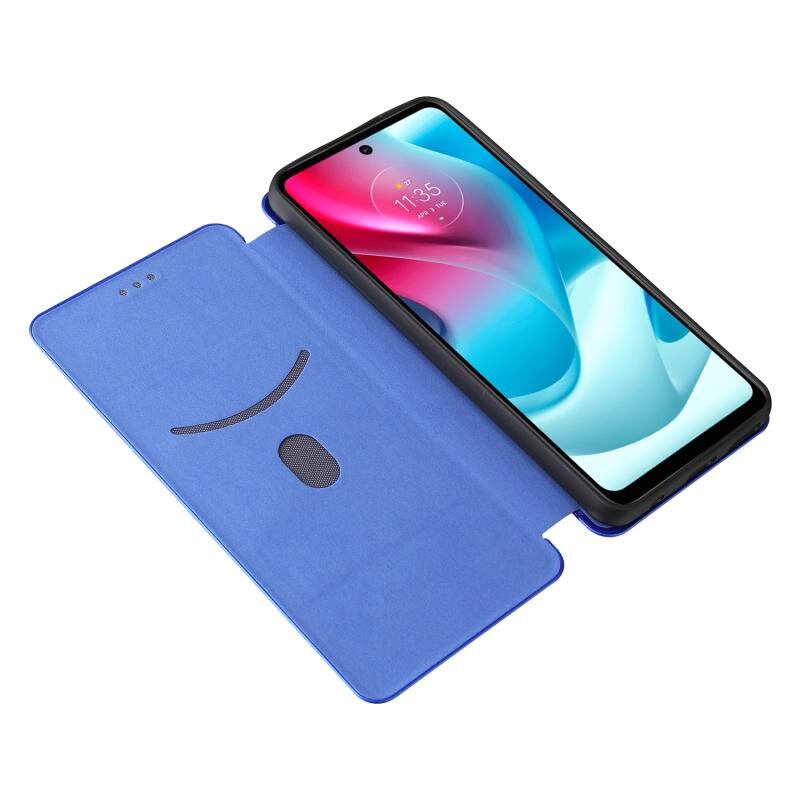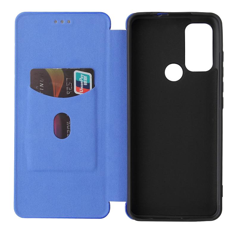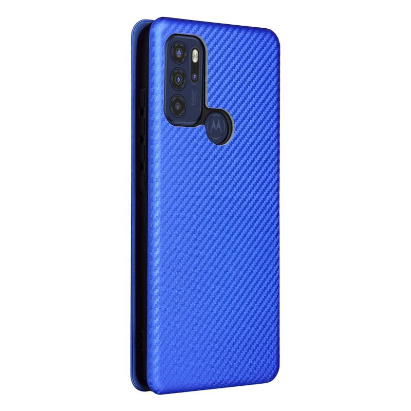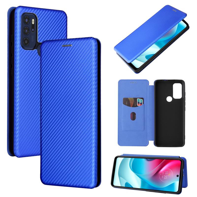 For Motorola Moto G60S Carbon Fiber Texture Leather Phone Case with Card Slot(Blue)
