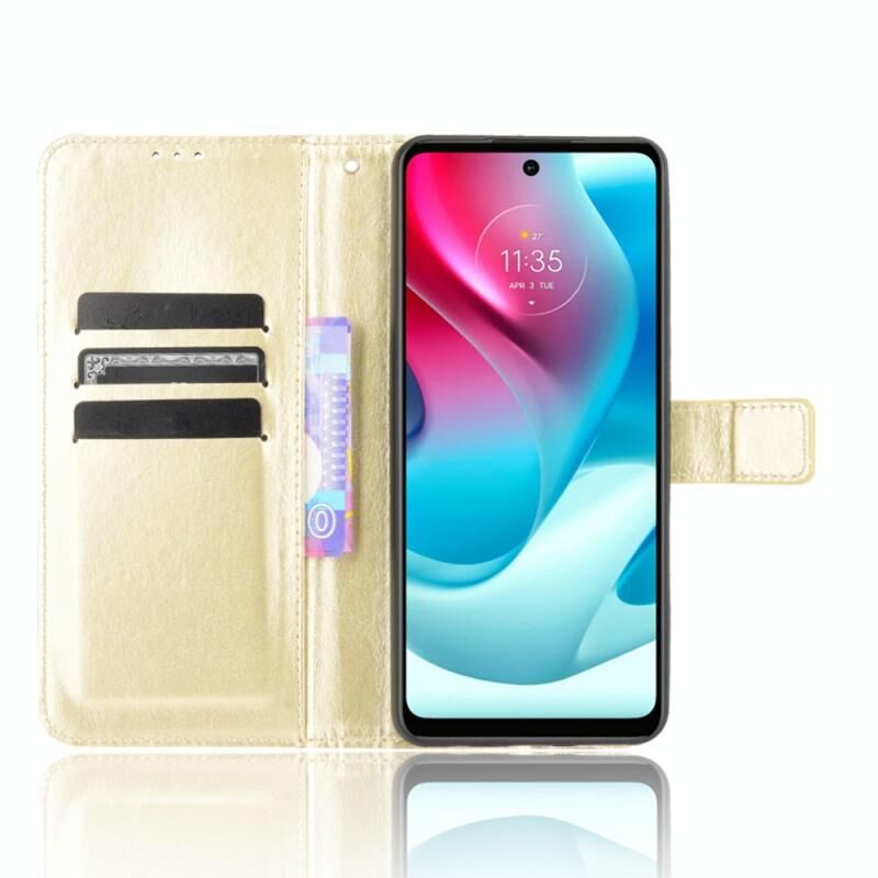 Για Motorola Moto G60S Crazy Horse Υφή οριζόντια Flip δερμάτινη θήκη με θήκη & υποδοχές για κάρτες & κορδόνι (χρυσό)