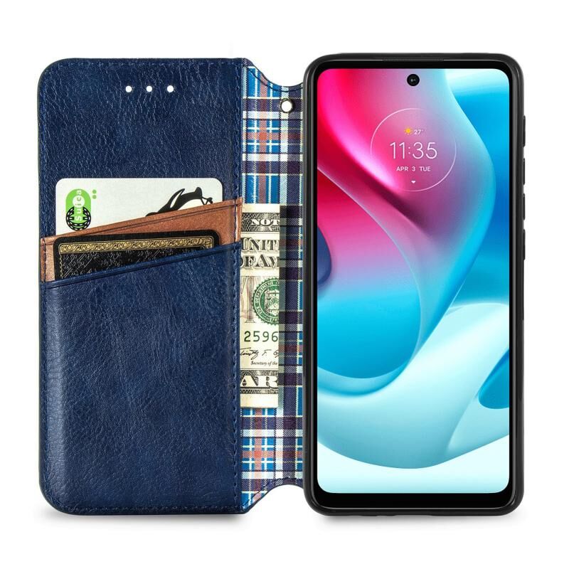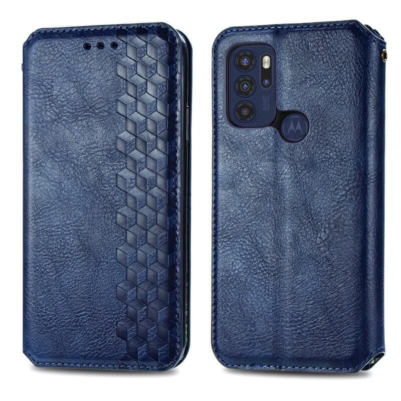 Για Motorola Moto G60S Cubic Grid Pressed Horizontal Flip Μαγνητική δερμάτινη θήκη τηλεφώνου με θήκη & υποδοχές για κάρτες & πορτοφόλι (μπλε)
