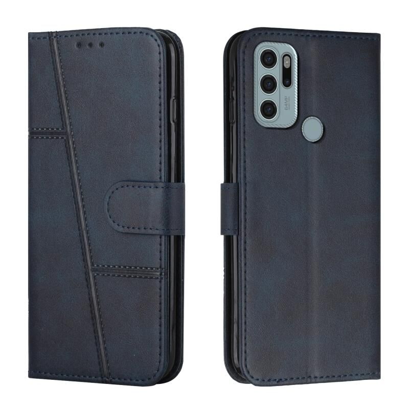 Για Motorola Moto G60S Stitching μοσχάρι υφή πόρπη δερμάτινη θήκη τηλεφώνου (Μπλε)