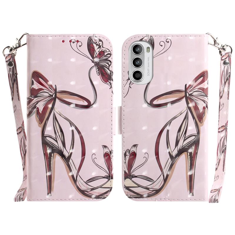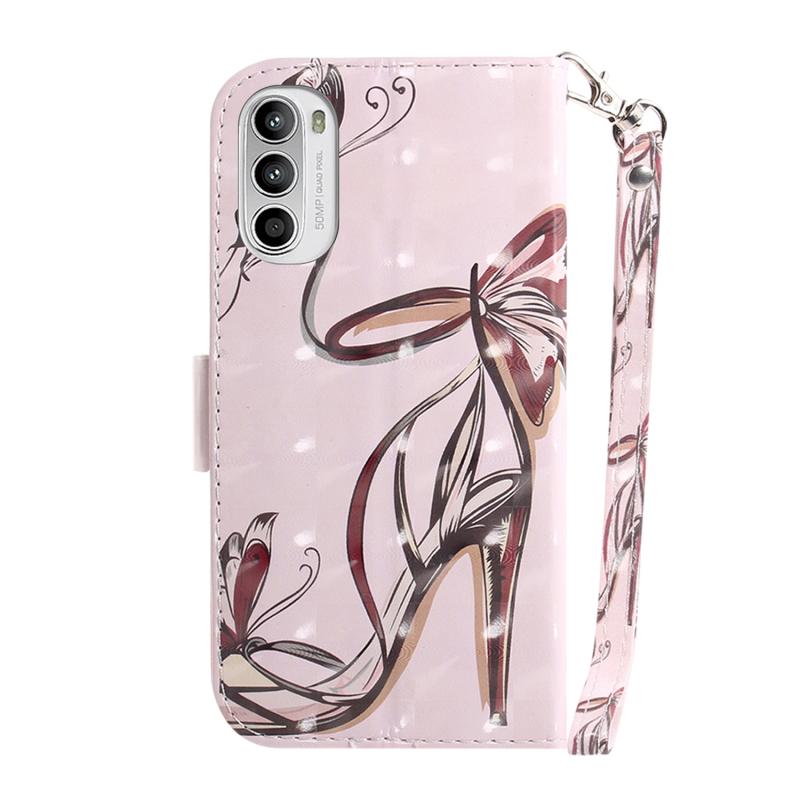 For Motorola Moto G62 5G 3D Colored Horizontal Flip Leather Phone Case(Butterfly High-heeled)