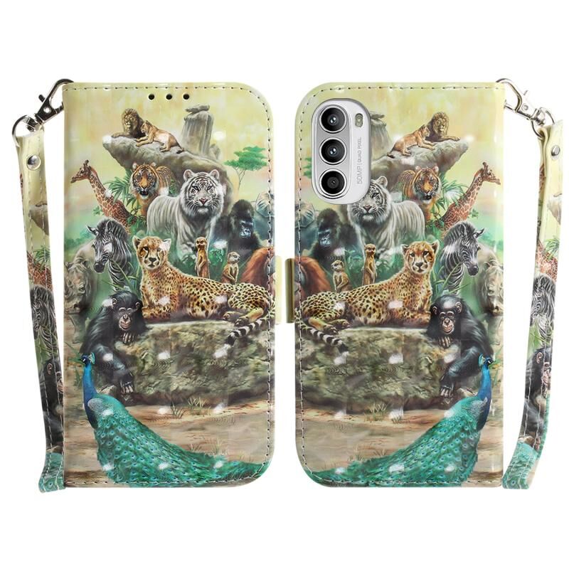 Θήκη τηλεφώνου δερμάτινη, οριζόντια, αναδιπλούμενη, πολύχρωμη 3D για Motorola Moto G62 5G (Ζωολογικός κήπος)