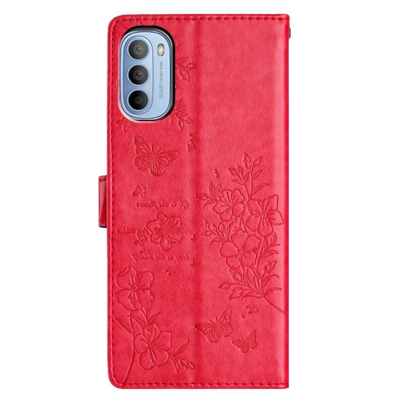 Θήκη τηλεφώνου από δέρμα για Motorola Moto G62 5G, με σχέδια πεταλούδες και λουλούδια (Χρυσό)