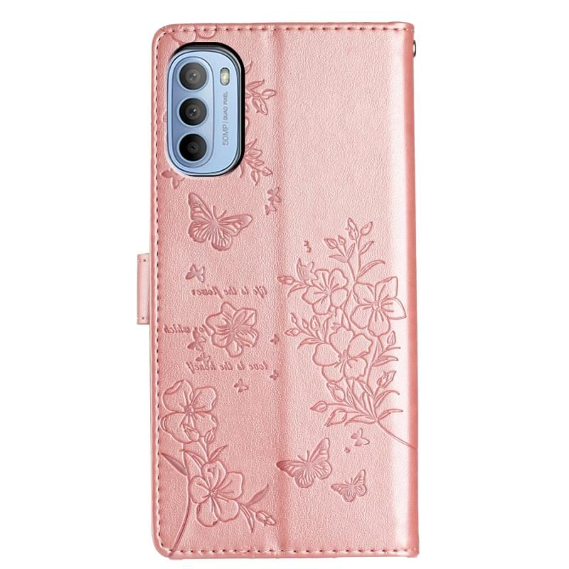 Θήκη τηλεφώνου από δέρμα για Motorola Moto G62 5G, με σχέδια πεταλούδες και λουλούδια (Χρυσό)