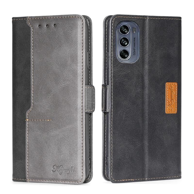 Για Motorola Moto G62 5G αντίθεση χρώμα πλευρά πόρπη δερμάτινη θήκη τηλεφώνου (μαύρο + γκρι)