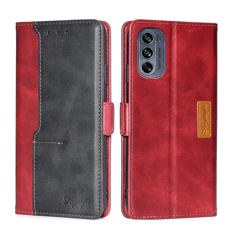 Για Motorola Moto G62 5G αντίθεση χρώμα πλευρά πόρπη δερμάτινη θήκη τηλεφώνου (κόκκινο + μαύρο)