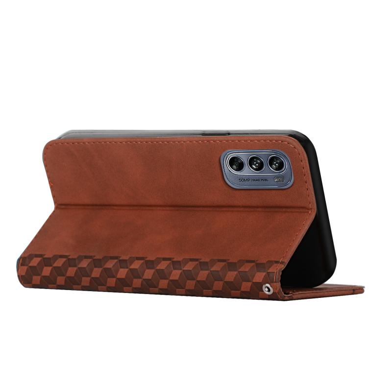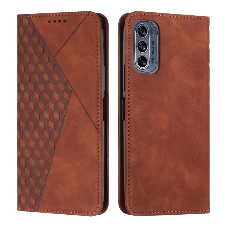 Θήκη κινητού τηλεφώνου με μαγνητική αίσθηση, με σχέδιο διαμαντιού και ραφές για Motorola Moto G62 5G (Καφέ)