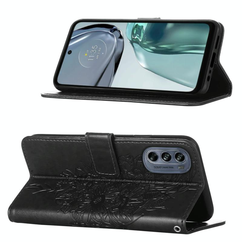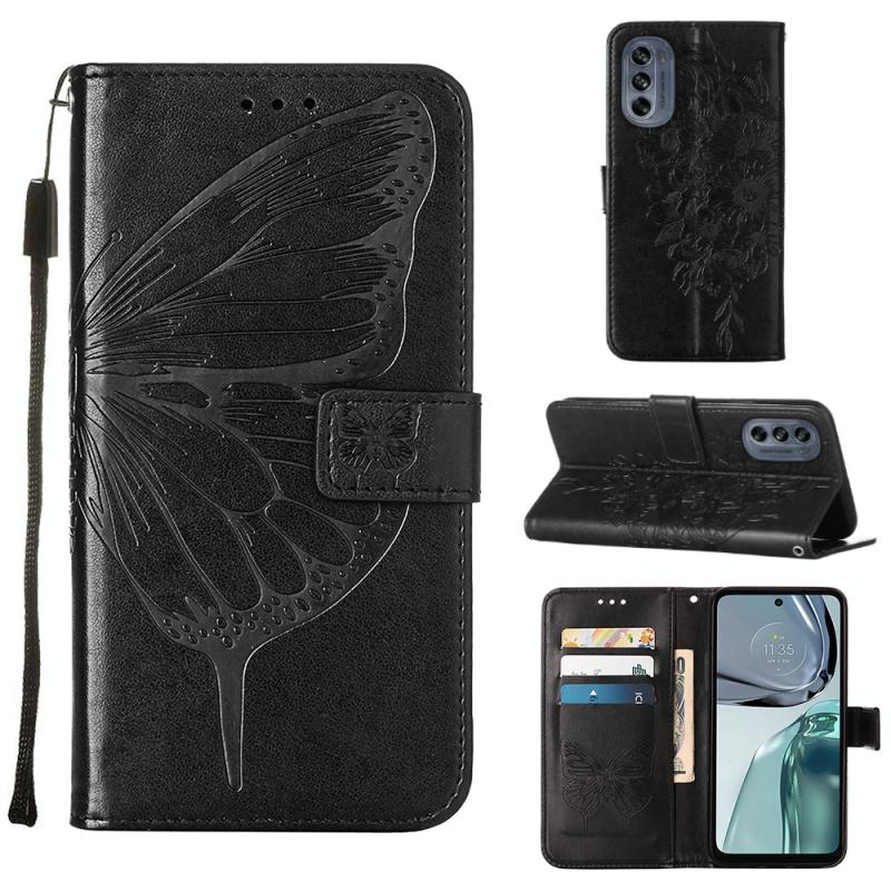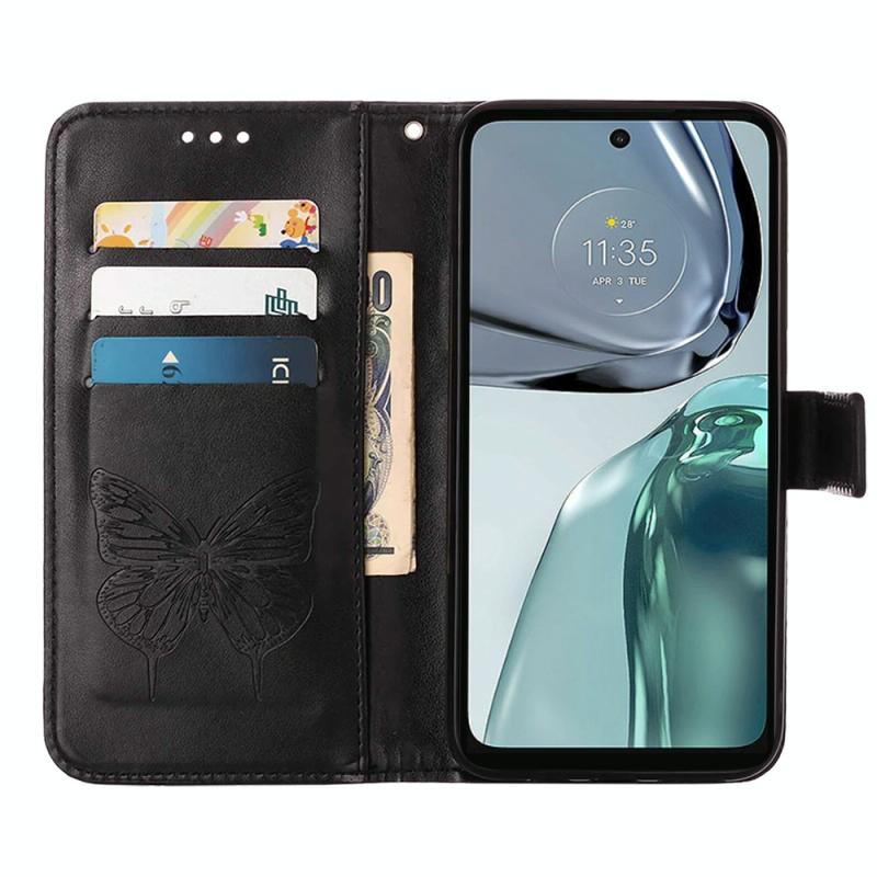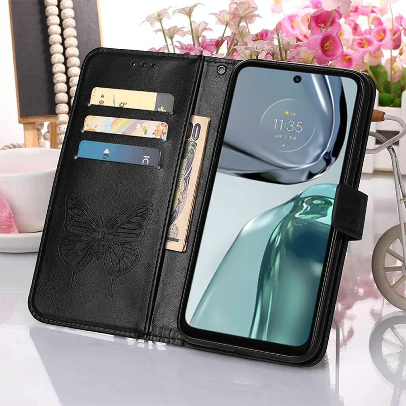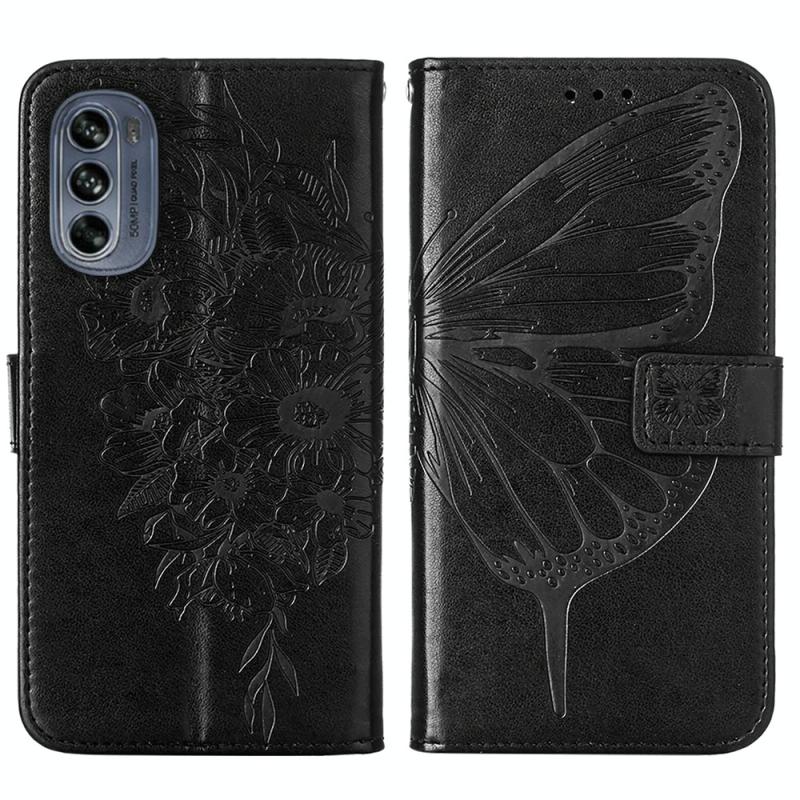 Θήκη τηλεφώνου από δέρμα με ανάγλυφο σχέδιο πεταλούδας και λειτουργία flip για Motorola Moto G62 5G (Γκρι)