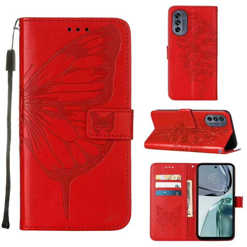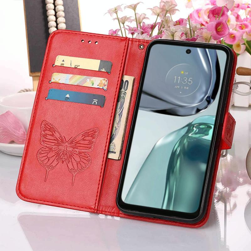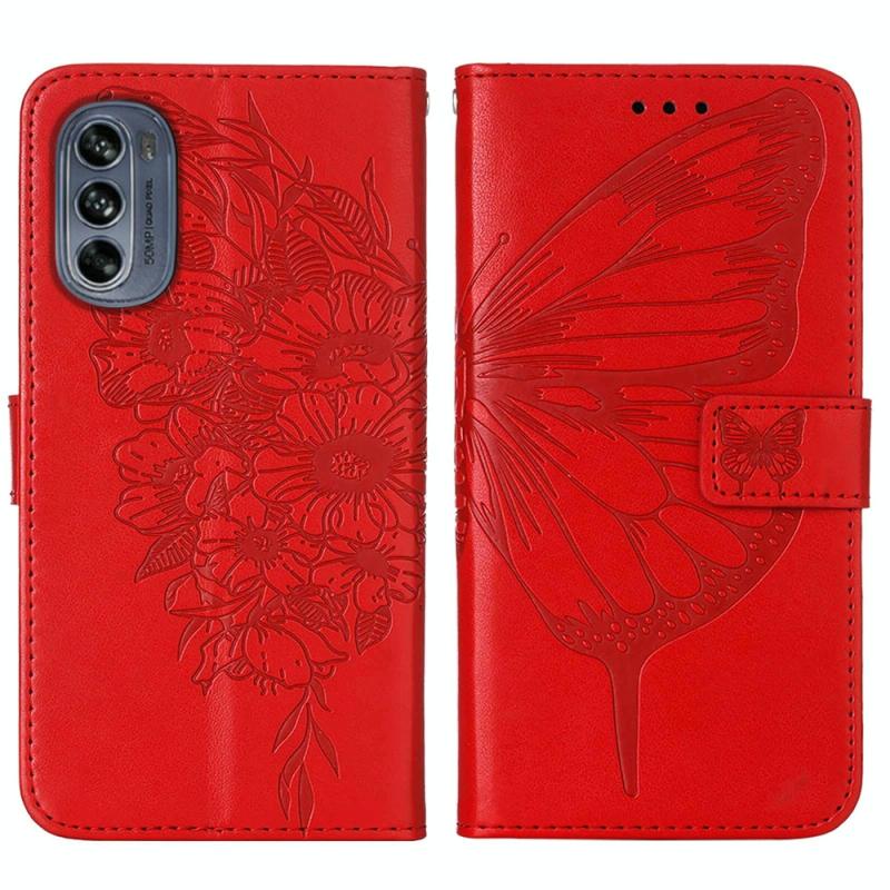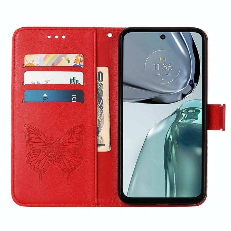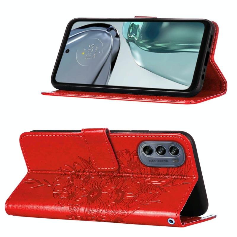 Θήκη τηλεφώνου από δέρμα με ανάγλυφο σχέδιο πεταλούδας και λειτουργία flip για Motorola Moto G62 5G (Γκρι)