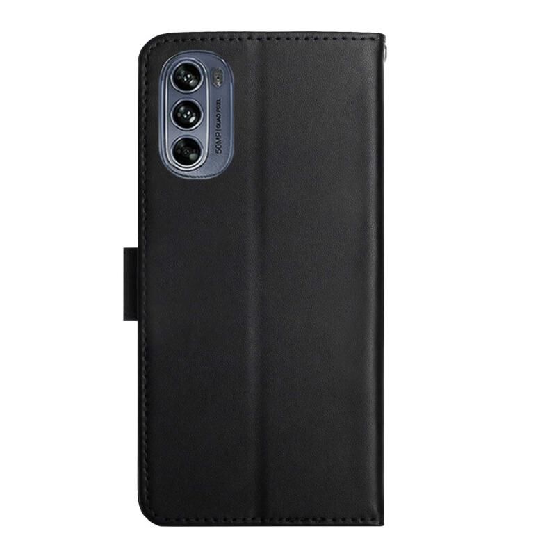 Θήκη τηλεφώνου οριζόντιας αναδίπλωσης από γνήσιο δέρμα για Motorola Moto G62 5G, ανθεκτική στα δακτυλικά αποτυπώματα (Μαύρο)