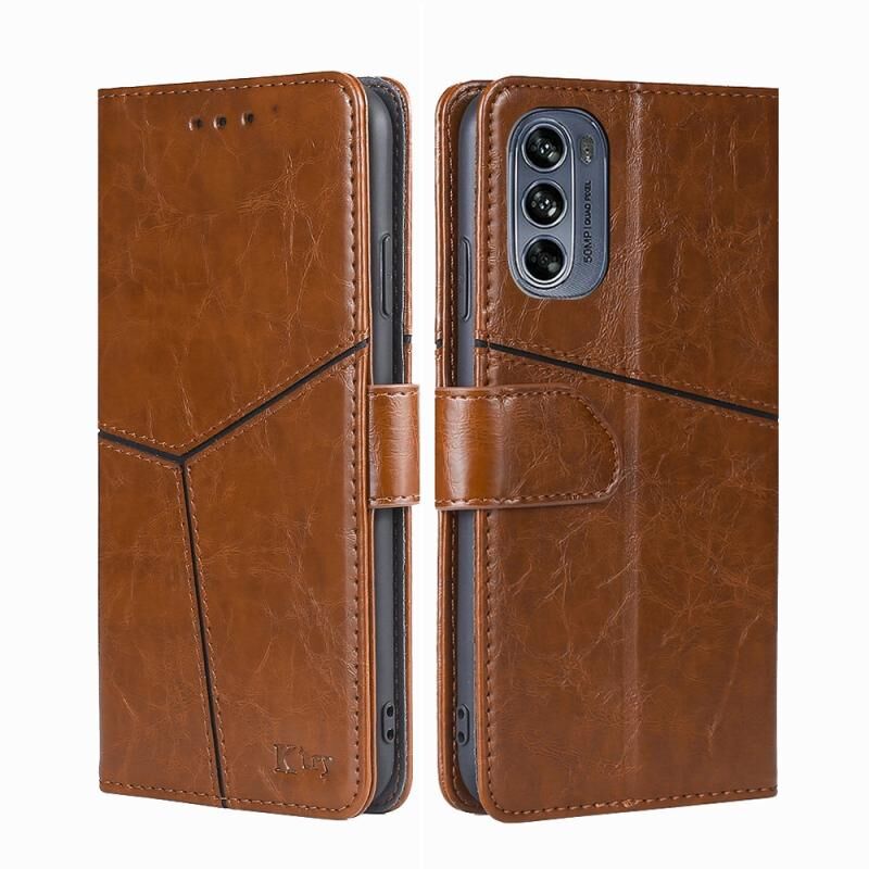 Για Motorola Moto G62 5G γεωμετρική ραφή οριζόντια Flip δερμάτινη θήκη τηλεφώνου (Ανοιχτό καφέ)