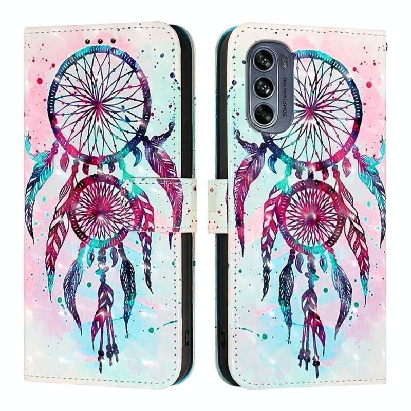 Θήκη τηλεφώνου δερμάτινη, οριζόντιας αναδίπλωσης, με τρισδιάστατη ζωγραφική για Motorola Moto G62 5G Global / India (Χρώμα: Αιωρούμενες καμπάνες)