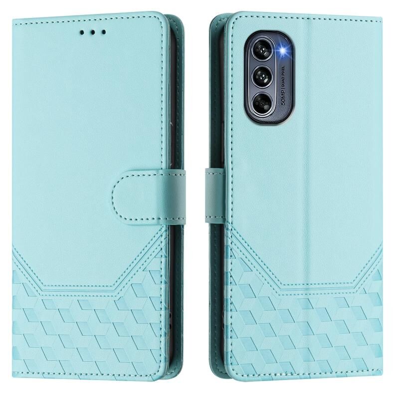 Για Motorola Moto G62 5G Global / Ινδία Honeycomb ανάγλυφη RFID δερμάτινη θήκη τηλεφώνου (πράσινο χρώμα)