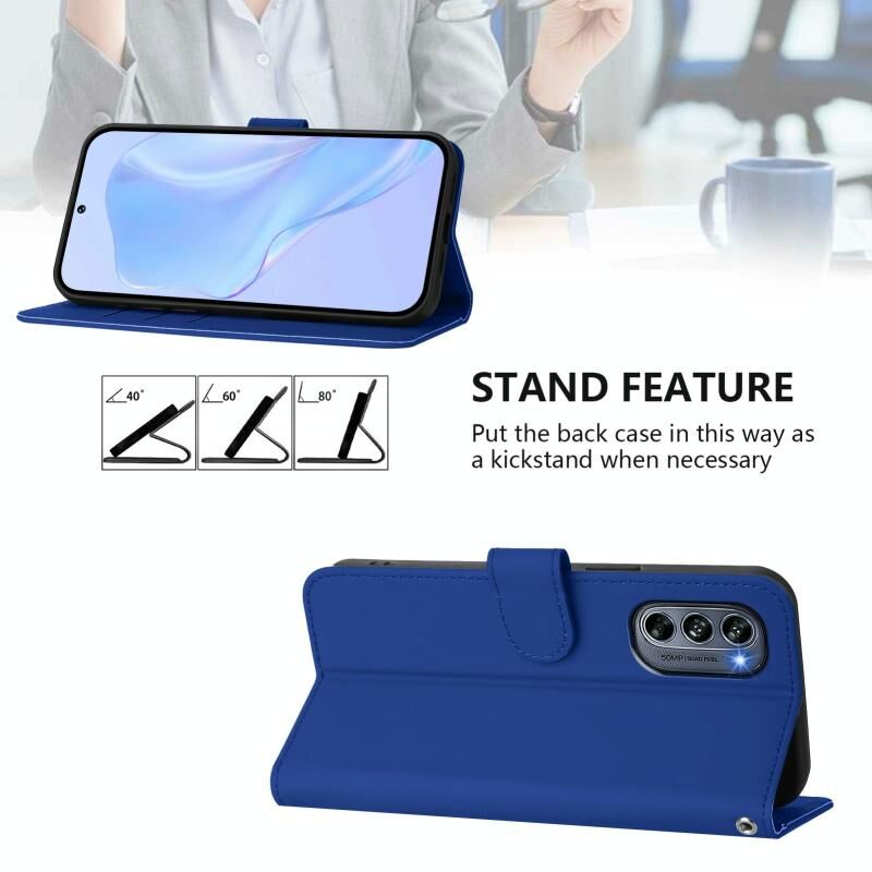Για Motorola Moto G62 5G Global Skin Feel Solid Color Δερμάτινη θήκη τηλεφώνου με κορδόνι (σκούρο μπλε)