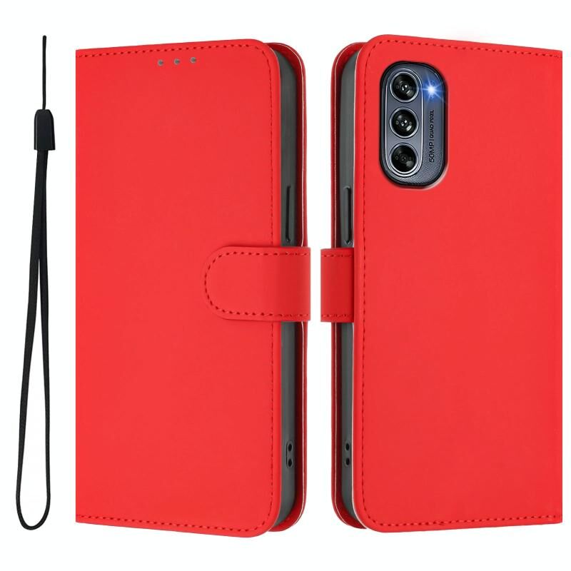 Για Motorola Moto G62 5G Global Skin Feel Solid Color Δερμάτινη θήκη τηλεφώνου με κορδόνι (κόκκινο)