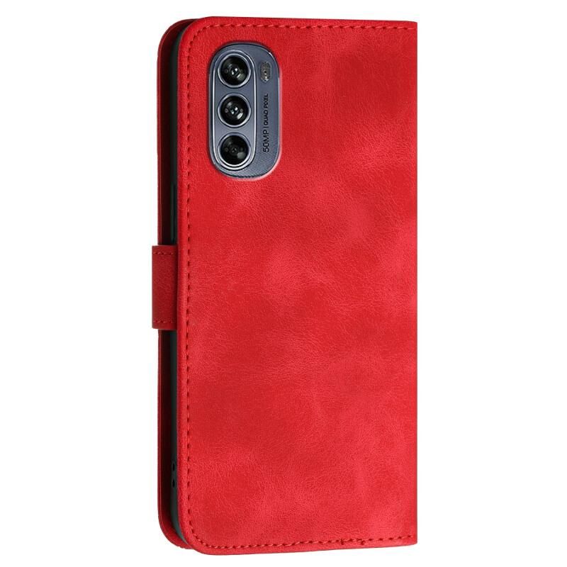 Θήκη κινητού τηλεφώνου δερμάτινη με ανάγλυφο σχέδιο πλέγματος πεταλούδας για Motorola Moto G62 5G με κορδόνι (Κόκκινο)