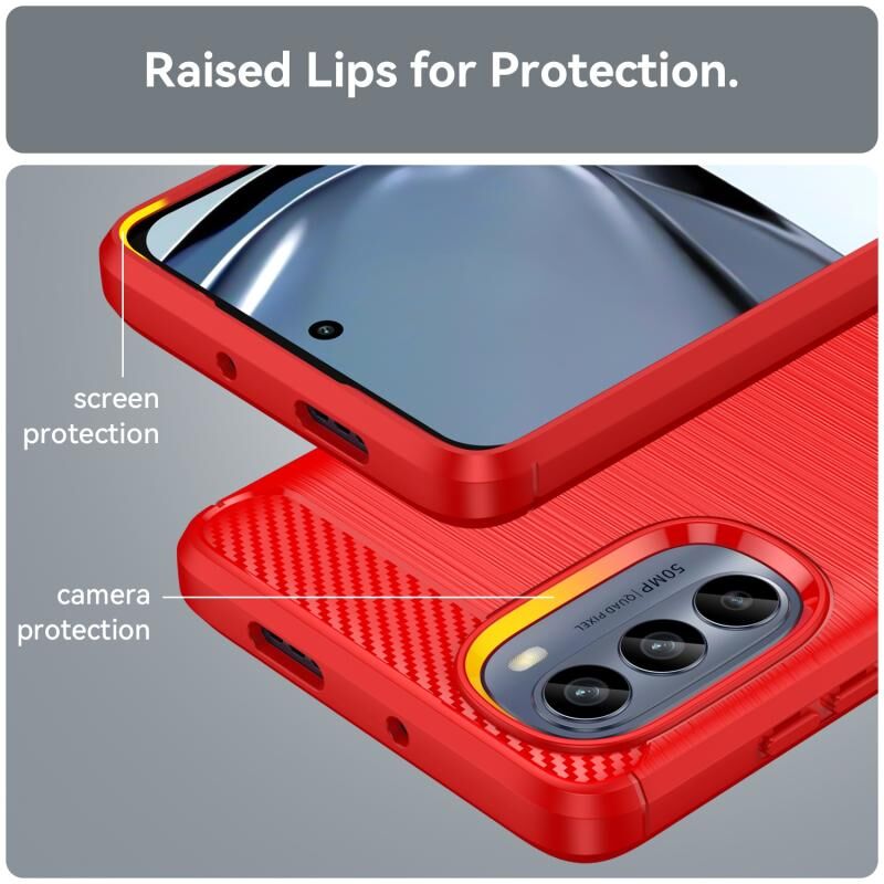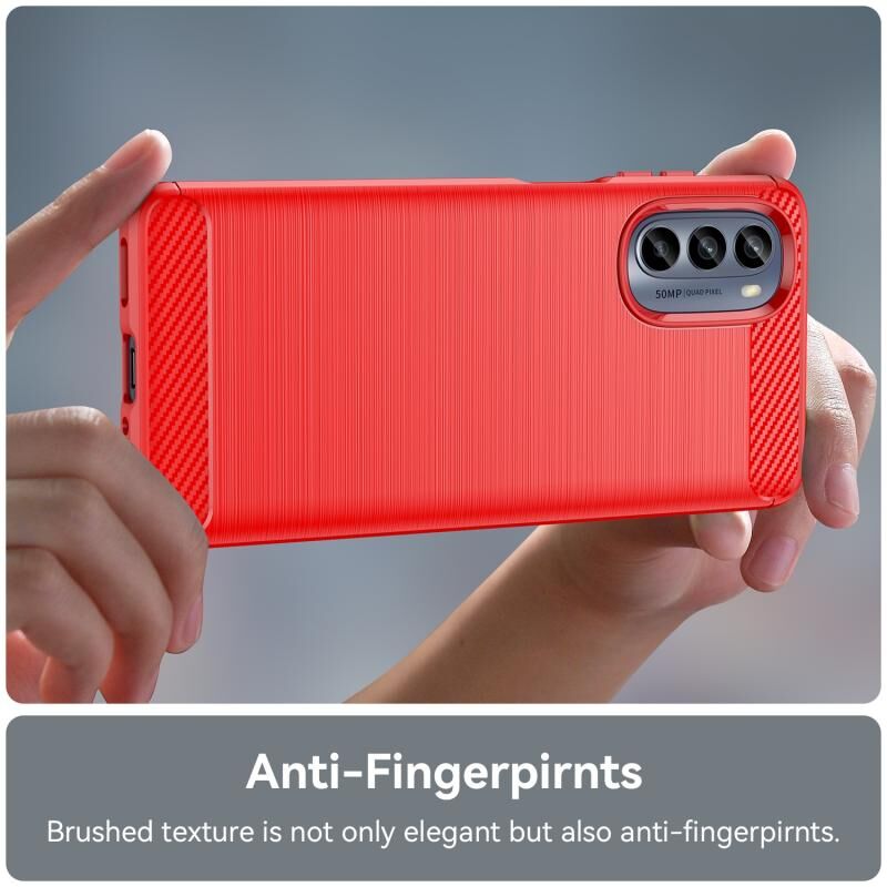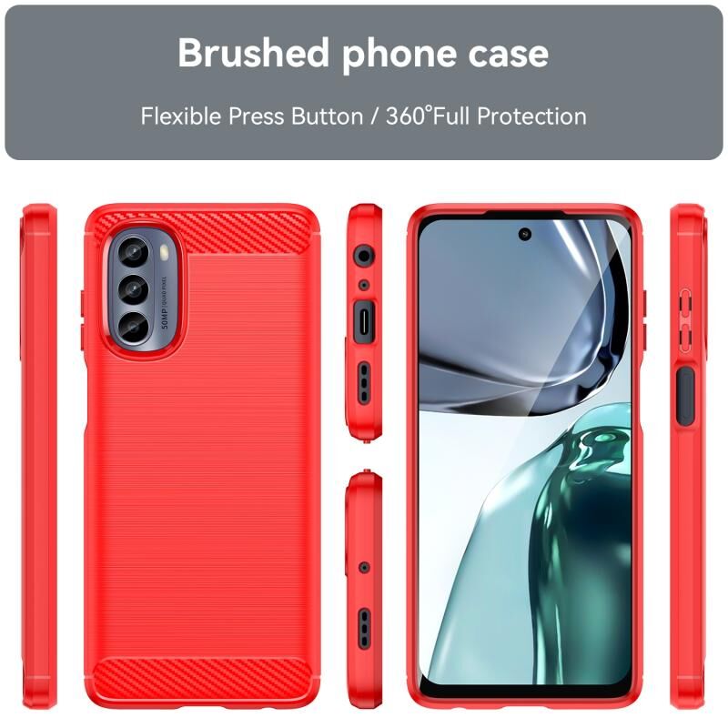 Για Motorola Moto G62 5G Ινδία βουρτσισμένη υφή Carbon Fiber TPU τηλέφωνο υπόθεση (κόκκινο)
