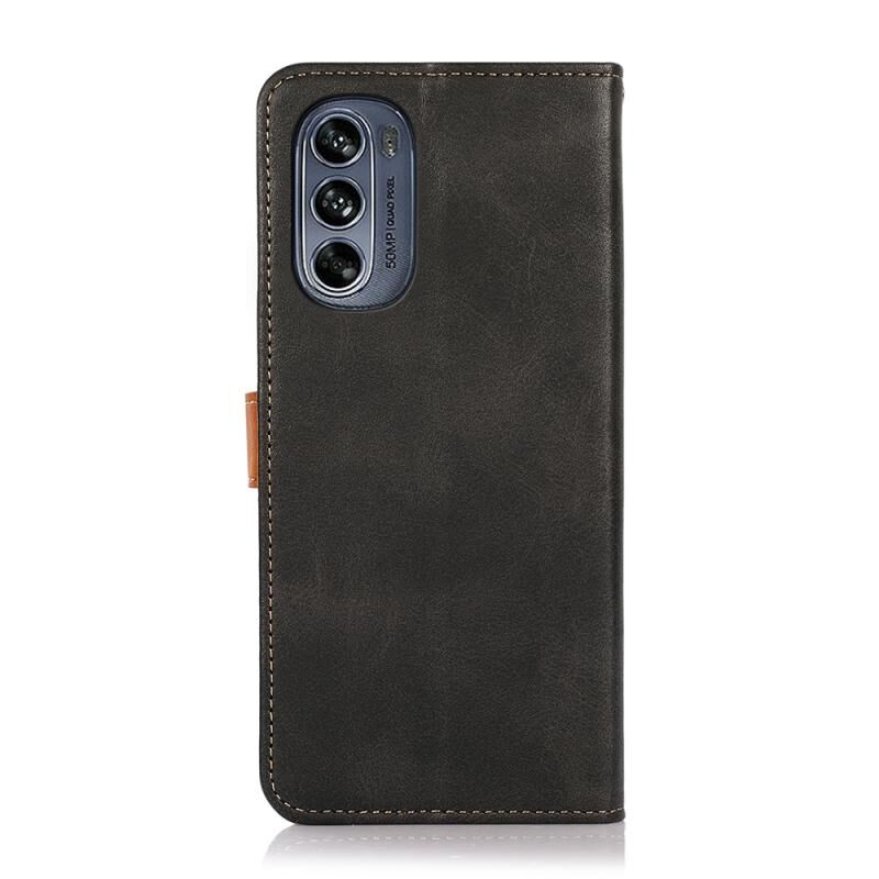 Θήκη τηλεφώνου δερμάτινη, αναδιπλούμενη, με υφή δέρματος αγελάδας διχρωμίας για Motorola Moto G62 5G KHAZNEH (Καφέ)