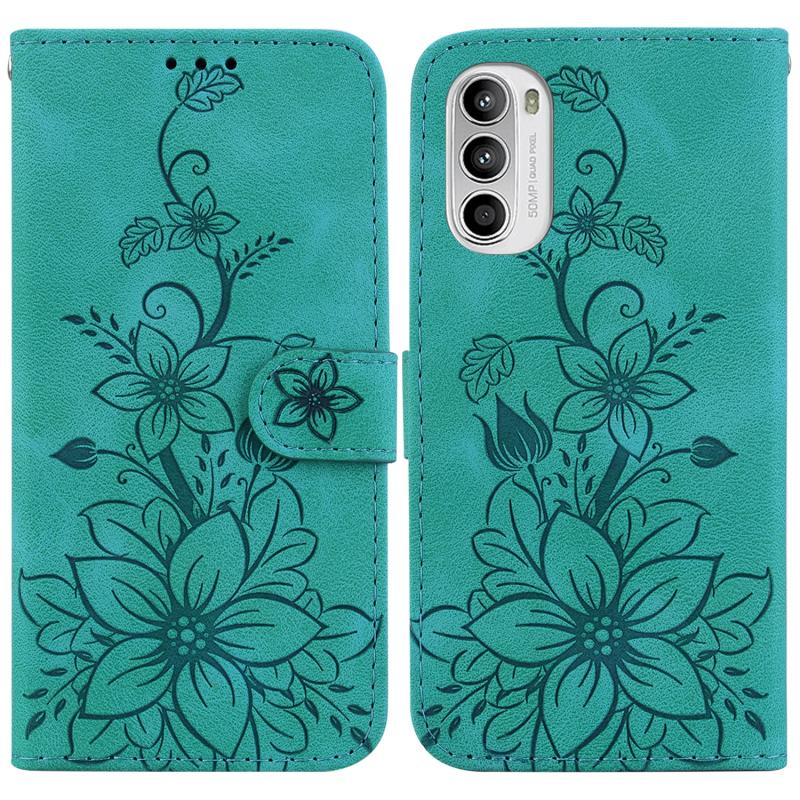 For Motorola Moto G62 5G Lily Embossed Leather Phone Case(Green)