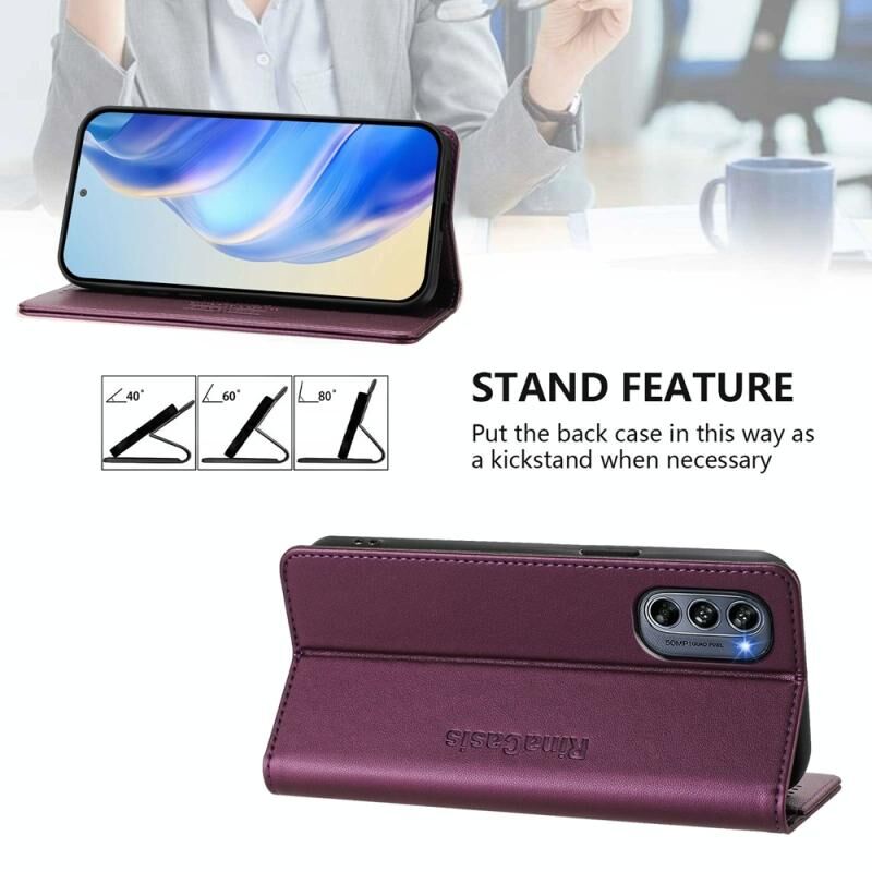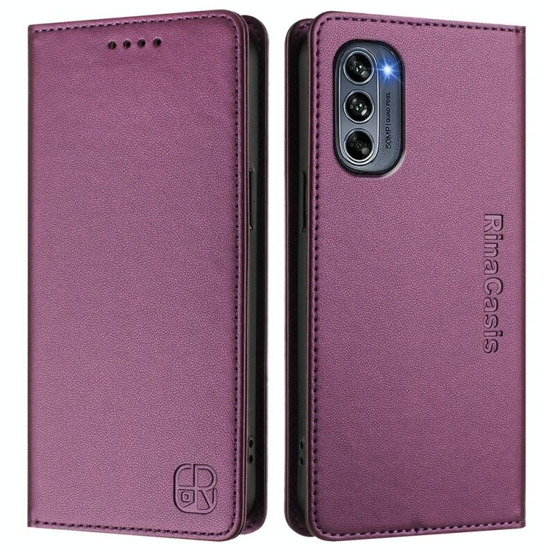 Για Motorola Moto G62 5G / Moto G62 India RC01 Δερμάτινη θήκη τηλεφώνου με διπλή πτυχή, μαγνητική απορρόφηση και RFID (Βιολετί)