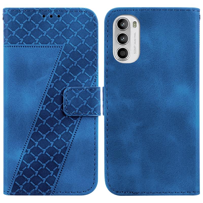 For Motorola Moto G62 5G Seven-shaped Embossed Leather Phone Case(Blue)