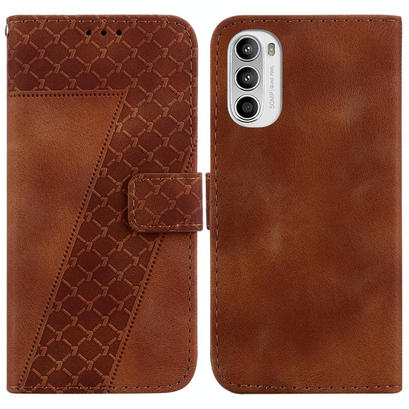 For Motorola Moto G62 5G Seven-shaped Embossed Leather Phone Case(Brown)