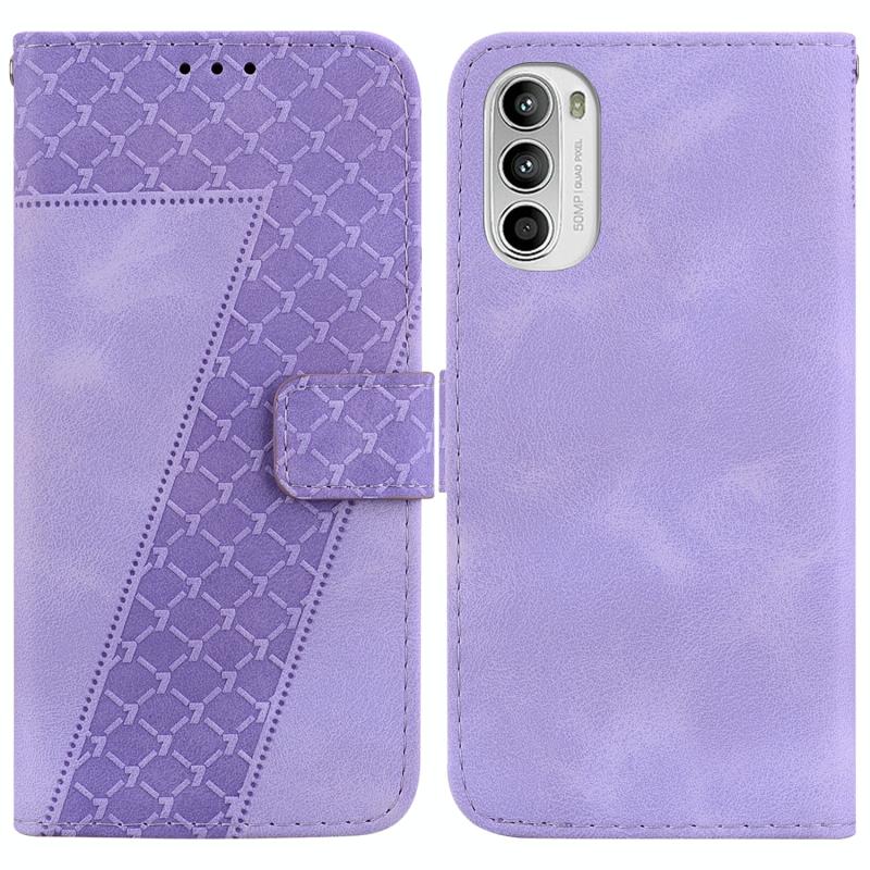 For Motorola Moto G62 5G Seven-shaped Embossed Leather Phone Case(Purple)