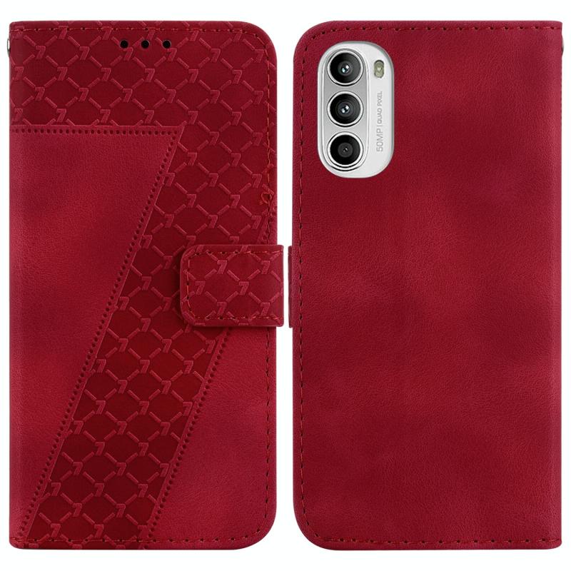 For Motorola Moto G62 5G Seven-shaped Embossed Leather Phone Case(Red)