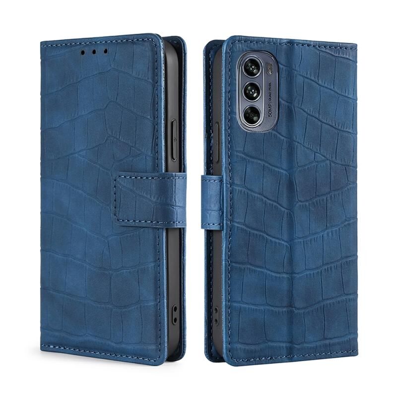 Θήκη τηλεφώνου δερμάτινη με μαγνητικό κούμπωμα και υφή κροκόδειλου για Motorola Moto G62 5G (Μαύρο)