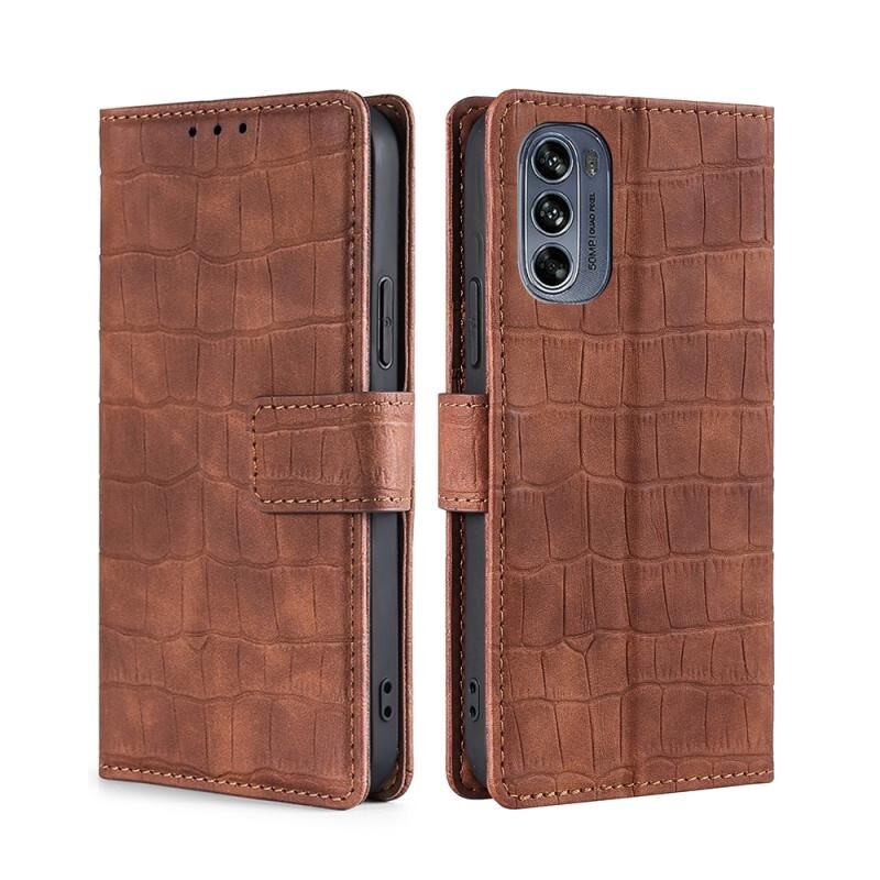 Θήκη τηλεφώνου δερμάτινη με μαγνητικό κούμπωμα και υφή κροκόδειλου για Motorola Moto G62 5G (Μαύρο)