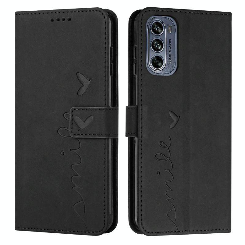 Θήκη τηλεφώνου από δέρμα με σχέδιο καρδιάς και αίσθηση δέρματος για Motorola Moto G62 5G (Μαύρο)